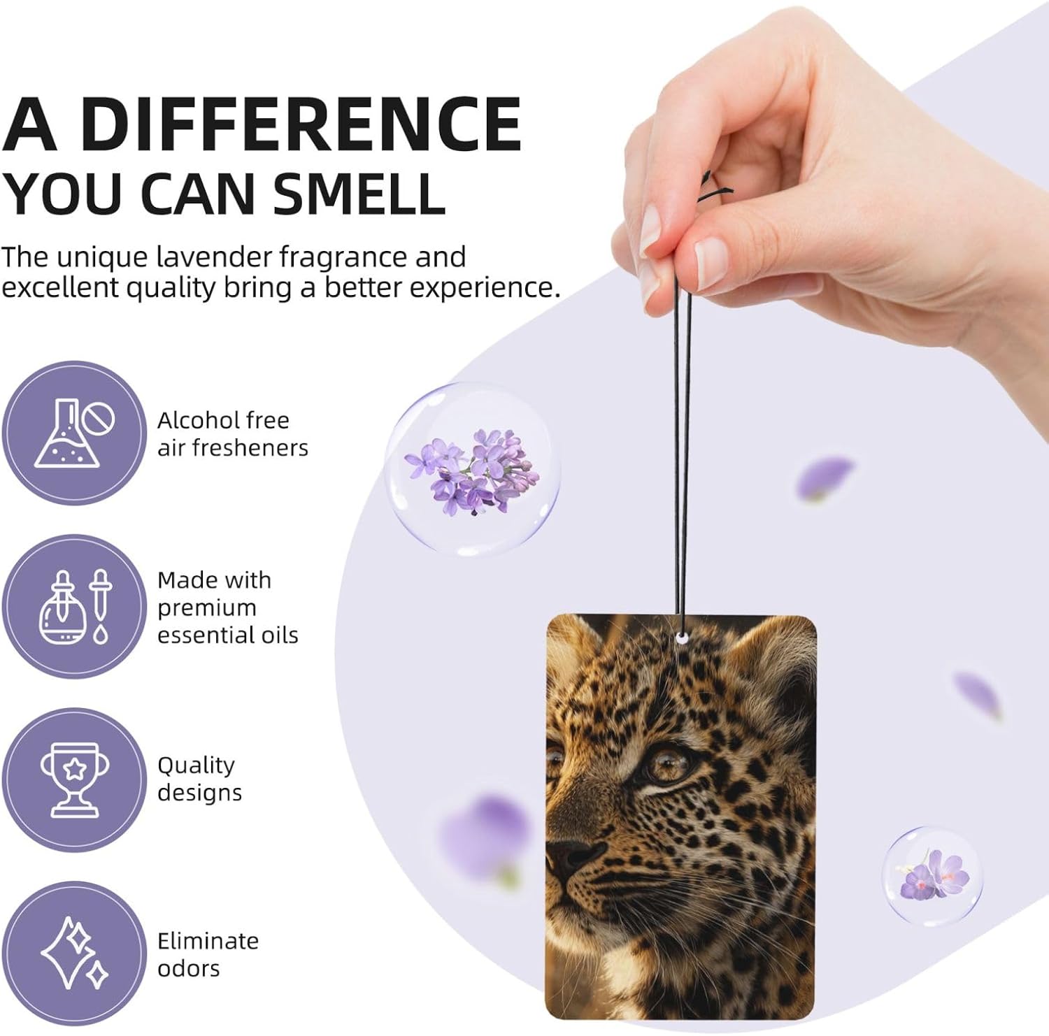 unobstructed vision: this Cute Leopard rearview mirror scented fresheners doesn't obstruct your vision while driving, ensuring a safe and comfortable journey every time.easy hang: we've included a convenient rope for hanging, making it super easy to attach this christmas air freshener wherever you prefer. No fuss, no mess - just hang and enjoy the fragrance.incredible package deal: this rearview mirror pendant aromatherapy tablets package includes 6 pieces in 6 captivating designs and 1 refreshing scents (lavender). Experience a variety of delightful fragrances that will keep your surroundings smelling wonderful throughout the day.environmental protection: the car air fresheners for women smell can last for about 1-2 weeks. When the smell fades, you can add your favorite perfume. Continue to use, reusable6 pcs included: you will receive 5 individual shoe cabinet fresheners, each in its own package; enjoy consistent scents for nearly a year, or share them with your friends or families