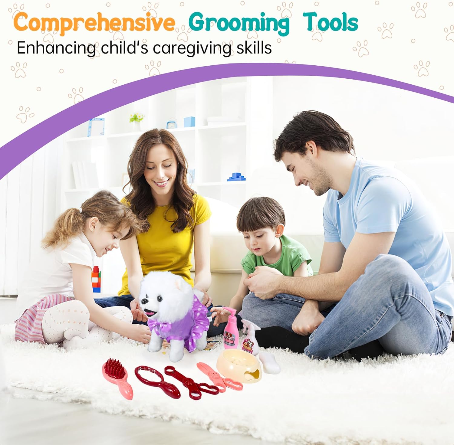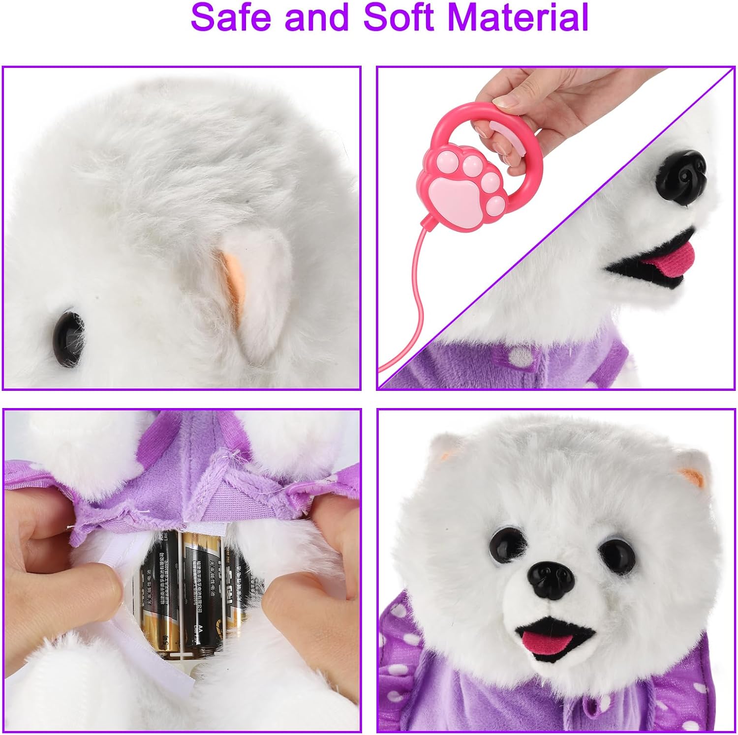 The cute electric plush toy puppy is the best companion to have around children, 3*1.5AA Batteries are required(NOT INCLUDED) Insert batteries into the belly of the puppy. Toy dogs that walk, bark, wagtails, and nod heads like a real dog would. When you put in the batteries and turn them on, press the button on the handle of the leash, it is fun to see the dog come to life. It walks, wags tails, head, and barks. Have fun with your lifelike pet without getting bitten or scratched. Soft and skin-friendly, furry ears, pleasant to the touch, and the hair won't be scattered. If she is not busy walking it or playing it, it’s soft enough to cuddle up with too. Interesting Dress up and pretend play games, more fun in the interaction with the electric plush puppy. Pretend the plush puppy pet dog with sunglasses bites the bone on the floor etc. Helping achieve more scene showcase in the playtime thereby cultivating the child's love, listening, attention and perception, etc. This is a perfect gift for any younger child, Suitable for any occasion like Christmas, a Birthday party, or Dog's club. Gift-giving for girls and boys aged 3 4 5 6+ years old and up. Kids deserve it!