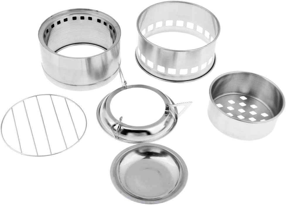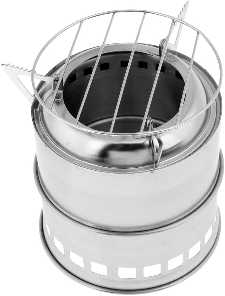 Description: - Made of stainless steel, with serrated Cross Support Rack for your kitchen utensils - Folding, detachable and Lightweight, can fit into backpack - Efficient Burning, less Smoke: : Wide Opening top facilitates the addition of wood; Double wall structure and the ventilation air circulation, improve the efficiency of burning. - Variety of fuel type: alcohol, branches, Leaves, Wood as Fuel for cooking a meal - Easily detachable and lightweight, comes with storage bag. - It is suitable for hiking, backpacking, camping, picnic, barbecue, outdoor survival and Adventures.Specification: - Unfold Size: approx. 13.518.5cm - Folding Size: approx. 13.57cmPackage Includes:1 x Wood Burning Backpacking Stove
