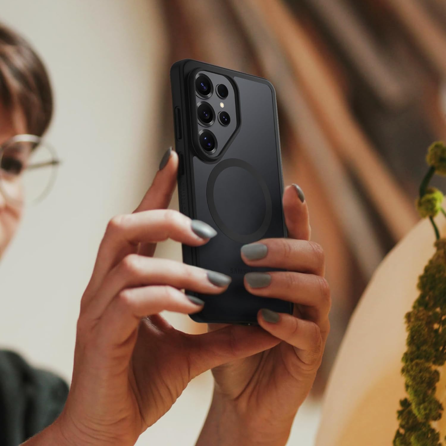 Keep your Samsung Galaxy phone safe and secure with Symmetry Series. This clear, ultra-thin phone case defends against hard drops and the bumps and dings of a connected life. You can call, text and video chat seamlessly as every function of your phone works flawlessly with Symmetry Series. The built-in magnets provide precision alignment and strong attachment for Fast Charge so you stay powered up and ready for anything. Also, you can take advantage of the opportunity to personalize and customize your stylish case when you use the built- in anchors.