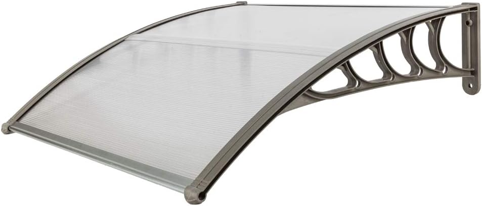 STERXONE Door Window Awning Features: 1. Refine workmanship by using premium materials 2. Guaranteed durability and quality, unused 3. Solid structure, good strength and easy operation 4. It is washable and quick dry 5. Shape a small shield for resisting rain or scorching sun coming into your house 6. Perfect for house decoration Specifications: 1. Brackets Material: ABS 2. Hollow Sheet Material: 5.0mm Polycarbonate 3. Fixing Bars Material: Aluminum 4. Color: Brown & Black Bracket 5. Dimensions: (39.37 x 39.37 x 9.84)" / (100 x 100 x 25)cm (L x W x H) 6. Weight: 6.17 lbs / 2.8 kg 7. Suitable for: Domestic Eaves Canopy Package Includes: 1 x Eaves Canopy