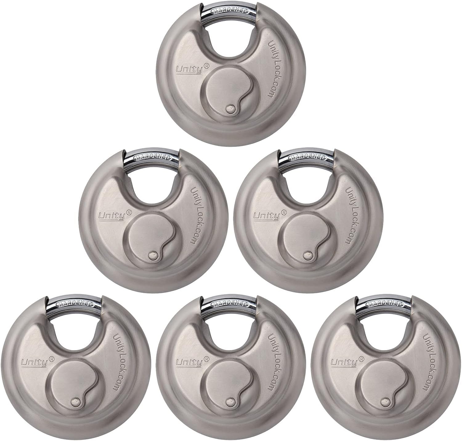 Unity Lock 2 3/4" 70mm Stainless Steel Discus Lock for Self Storage Unit Van Trailer Container, Multi Purpose Premium Manager Lock Same Keyed Alike (5)