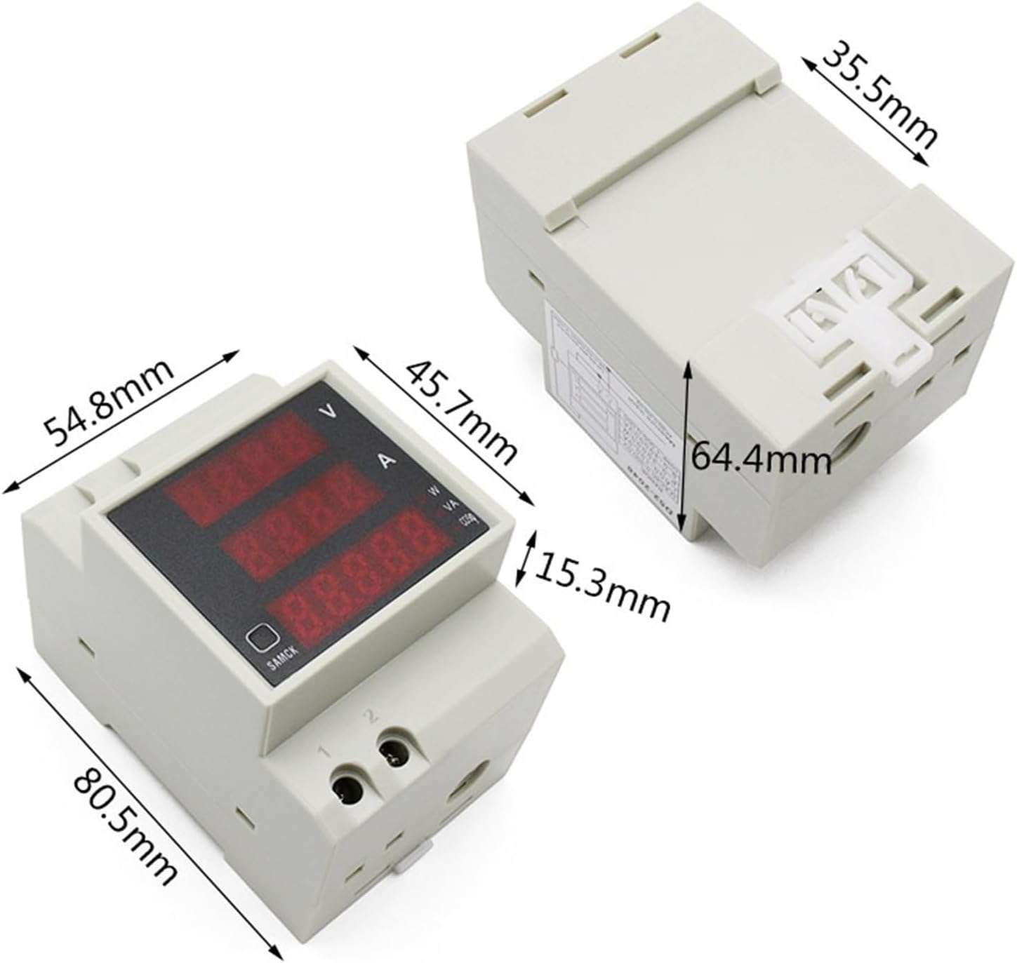 InstrumentationDigital Energy Meter Din Rail LED Active Power Factor Multi-Functional Power Met Features: Multi-functional digital-display meter can measure the AC voltage and current, active power, apparent power and power factor at the same time. Adopting high strength fire retardant material, safe and reliable. High measurement accuracy, stable performance. Compact size and sturdy structure, easy installation. No external AC transformer is required for measuring current within 99.9A. Simply pass the wire of the measuring loop through the small round hole on the right side of the meter to complete the measurement. Specification:Measurement voltage: AC80-300V, AC200-450V (Optional)Measuring current: AC100A (additional transformer is required if it is greater than 100A)Power supply: no power supply is requiredMeasurement accuracy: 0.5%Overall dimensions: 54 * 80 * 64mm / 2.1 * 3.1 * 2.5inInstallation: 35mm din rail installationPackage List:1* Multi-Functional Meter